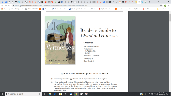 Go to https://goldenalleypress.com/wp-content/uploads/2019/01/Hertenstein-CloudOfWitnesses-ReaderGuide.pdf to download a PDF containing a Reader's Guide for Teachers